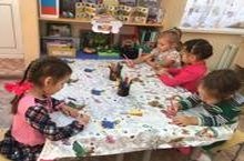 Сегодня дети ясельной группы на занятии конструировали снеговика.