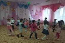 Мәктәпкә әзерлек төркеме балалары "Ак калач" татар халык уенын уйныйлар.