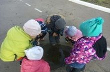 Цель: развивать навыки наблюдения за сезонными изменениями в природе; активизировать речь детей; расширять представления детей о лужах (как они образуются, какого цвета вода и т.д.); воспитывать бережное отношение к окружающей нас природе.