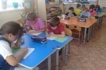 На занятии по обучению грамоте дети знакомились с гласными звуками и буквами.