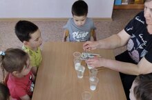 Сегодня в средней группе провели час Науки на тему ,, Радужная вода".