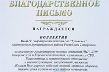 Огромное спасибо сотрудникам детского сада за оказанную гуманитарную помощь жителям ДНР и ЛНР,Запорожской и Херсонской областей,и участникам СВО. Молодцы!