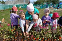 Көзге матур көннэр дәвам итә. Балалар тәрбияче апалары белән чәчәк орлыклары җыярга чыктылар.