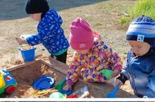 Кечкенәләр төркеме балалары үз вакытларын бик теләп комлыкта үткәрергә яраталар. Төрле фигуралар, күмәчләр ясыйлар. Вак моториканы үстерәләр, тотып- тоемлап карау үзлекләре белән танышалар. Ком белән уйнау барышында балаларда түземлек, тырышлык, төгәллек үстерелә.