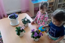 Дети любят ухаживать, поливать растения в группе детского сада, протирать крупные растения влажной тряпочкой, рыхлить почву и опрыскивать листья. Такие элементарные трудовые поручения воспитывают интерес к комнатным растениям и желание ухаживать за ними.