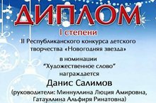 Воспитанник старшей группы Салимов Данис участвует во II Республиканском конкурсе среди детей дошкольного и школьного возраста "Новогодняя звезда". Желаем успехов!