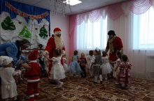 Бүген кечкенәләр төркемендә Яңа ел бәйрәме үтте. Балалар Кыш бабай һәм Кар кызын каршы алдылар. Алар белән бергәләшеп күңел ачтылар, кечкенә генә булсалар да үзләренең һөнәрләрен күрсәттеләр. / Сегодня в первой младшей группе прошел утренник Нового года. Дети встретили Деда мороза и Снегурочку. Несмотря, на маленький возраст, ребята сумели показать на что они способны: пели, танцевали, рассказывали Деду Морозу свои стишки.