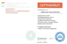 13 февраля учитель татарского языка и литературы Сафиуллина Э.Д. приняла участие IХ Международном научно-методическом семинаре «Совершенствование методики обучения языкам: площадка обмена прогрессивной практикой», посвященный 200-летию со дня рождения великого мыслителя, ученого-энциклопедиста, педагога и просветителя Каюма Насыри в г.Казань.