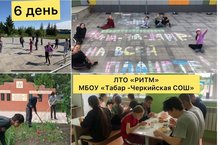 6-ой День Лагеря Труда и Отдыха "РИТМ» прошёл продуктивно. После линейки и физ минутки вожатые провели инструктаж и огласили распорядок сегодняшнего дня. Так же сегодня провели акцию «Я люблю мир!» рисовали на брусчатке. Ребята помогали в благоустройстве территории обелиска, школы и внутри школы. Отличный и насыщенный день.