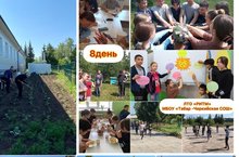 Продолжился день трудовым десантом. Ребята поливали и пропалывали клумбы, убирали мусор на территории школы. При этом обязательно соблюдались нормы безопасности. -