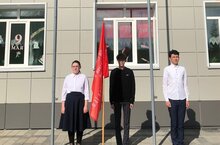 Торжественная церемония поднятия флага РФ и копии Знамени Победы прошла в нашей школе 4 мая в честь Дня Победы.