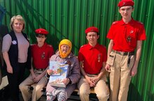 Юнармейцы подарили труженика тыла подарки и открытки , в рамках празднования 78 летия победы ВОВ. В завершении визита юнармейцы сфотографировались на память с ветеранами. -