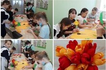 На кружке "Очумелые ручки" полным ходом идёт подготовка к 8 марту.