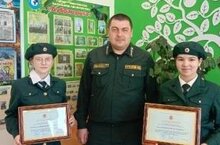 Руководитель-лесничий ГКУ "Буинское лесничество" Гатауллин Ильнар Илдусович наградил членов школьного лесничества "Дубравушка" (рук-ль:Игнатьева Н.М) Викторию Михайлову и Регину Бурганетдинову Благодарственной наградой и памятными подарками от Министерства лесного хозяйства Республики Татарстан за участие в конкурсе по созданию герба школьного лесничества РТ.