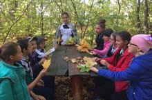Зелёный патруль ведёт Зеленую перепись на школьной экологической тропе.
