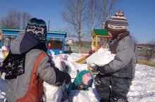 Спорт уеннарына балалар телэп катнашалар . Торле ярышлар алар очен бигрэк тэ кунелле." Кыршаудан- кыршауга" уены аша балалар тизлеккэ, тогэллеккэ. куш аякта сикерергэ ойрэнэлэр. Шул ук вакытта бердэмлек,аралашу тэрбиясе дэ устерелэ.