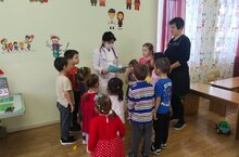 "Авылыбыз фельдшеры бакчабызда кунакта" 18.12.2023 Авылыбыз фельдшеры Гөлзәмия Мансуровна Миннебаева бакчабызда кунакта булды.Балаларыбыз белән профилактик әңгәмә үткәрде, аларның сәламәтлекләрен тикшерде.