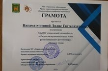 "Тәрбиячебезнең чираттагы уңышы" 26.05.2023 Бакчабызның тәрбиячеләре һәрдаим төрледән төрле конкурсларда катнашып торалар. Зурлар төркеме тәрбиячесе Нигмәтҗанова Лилия Гаптеләхәт кызының чираттагы уңышы.