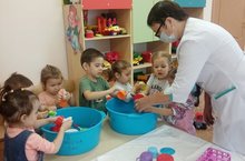 "Уенчыклар юабыз" 20.10.2022 Балаларда хезмәткә карата уңай мөнәсәбәт, хезмәт итү, өлкәннәргә булышу теләге тәрбияләү, балаларны үз бүлмәләрендәге уенчыкларны җыештырып, тәртипләп куярга, аларны юарга өйрәтү максатыннан кечкенәләр төркеме нәниләре белән уенчыкларны юдык.Үзләре уйнаган уенчыкларны бик теләп чиста итеп юып куйдылар.