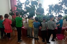 Балаларда бүлмә гөлләренең матурлыгына соклану тудыру, сакчыл караш аша экологик белем бирү, өлкәннәрдән үрнәк алып, гөлләрне үстерергә теләк уяту, әхлак тәрбиясен ныгыту, зурлар хезмәтен бәяләргә, ихтирам итәргә өйрәтү максатыннан зурлар төркеме балалары белән бүлмәбездәге гөлләрнең тузаннары сөрттек,сулар сиптек.