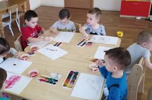 Кечкенәләр төркемендә балалар рәсем шогылендә. Алар төсләрне дөрес кулланырга, матурлыкны күрә белергә өйрәнәләр. Ясган рәсемнәреннән шатлык хисләре тудыру. Карандашларның, акварельләрнең төсләрен аерырга өйрәтү.