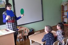 Икенчк кечкенәләр төркемендә тәрбияче Сабирҗанова Тәнзилә балаларны Тукай әкиятләре белән таныштыра."Кәҗә белән сарык "әкияте буенча өстәл курчак театры спектакле күрсәтә.