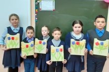 Бүген башлангыч класс укучылары төсле кәгазьләр ярдәмендә чәчәкләрдән композиция ясадылар. 27.02.2020