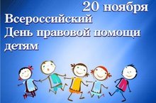 20 ноября ежегодно проводится Всероссийская акция — Всероссийский День правовой помощи детям. В этот день в 1959г. ООН приняла Декларацию прав ребенка, а в 1989г. была принята Конвенция о правах ребенка. 20.11.2018