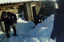 5-6 класс укучылары Хайруллина Талия апаның йорт әйләнәсен кардан чистарталар