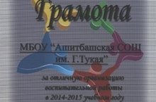 Наша школа заняла 1 место за отличную организацию воспитательной работы в 2014-2015 учебном году среди школ Арского района . Желаем дальнейшего роста и процветания, всех благ!