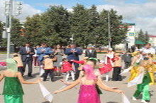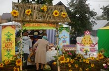 Бай ассортимент , зәвык белән эшләнелгән сату мәйданчыгы, әллә кайдан күзгә ташланып, халыкны үзенә чакыра. Самовар кайнап тора, мул чәй өстәле кунаккларны үзенә тарта. Көзге яңгыр да бәйрәмгә комачау итә алмады. -