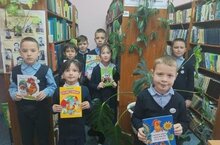Бүген башлангыч класс укучылары “Туган тел сагында” атналыгы кысаларында китапханәгә кунакка бардылар. Китапханәче Сабитова Талия балалар өчен “Китаплы балачак илендә” дип исемләнгән китап күргәзмәсе оештырды. Ул укучыларны Татарстан китап нәшриятында басылып чыккан яңа татарча китаплар белән таныштырды, татар язучылары һәм аларның иҗаты турында сөйләде. Балалар үзләре теләгән китапларны өйдә укырга сайлап алдылар. Соңыннан табышмаклар, мәкальләр, әкиятләр буенча ясалган викторинада катнаштылар.