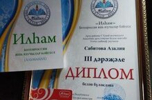 Мәктәбебезнең 9 нчы сыйныф укучысы Сабитова А. , йомгаклау турына барып җитеп, 3 нче дәрәҗә Дипломга ия булды. Азалияне чын күңелдән котлыйбыз!
