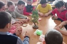 Язгы каникуллар башланып китте. Башлангыч класс укучылары бүген «Оста куллар» түгәрәгенә җыйналды. Алар сәйләннәрдән агач ясау өчен детальләр әзерли башлады. Укучылар түгәрәктә бик теләп шөгыльләнә.