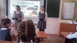 Вниманию детей была предложена слайд – презентация о детях войны. Ученики узнали, как, отложив недочитанные книжки и школьные учебники, они взяли в руки винтовки и гранаты, стали сынами полков и партизанскими разведчиками, попадали в фашистские концлагеря. Дети неутомимо работали в цехах заводов и на колхозных полях. Они порой делали то, что не под силу было сильным мужчинам. Дети войны совершили истинный подвиг. За особые заслуги, мужество и героизм, проявленные в борьбе с фашистскими захватчиками десятки тысяч детей были награждены орденами и медалями, многим было присвоено звание Герой Советского Союза посмертно. Были названы имена юных патриотов: Лиды Вашкевич, Нины Куковеровой, Вали Котика, Зины Портновой, Юты Бондаровской.