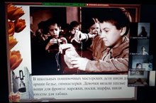 Учащиеся посмотрели презентацию, из которой узнали о трагической судьбе детей блокадного Ленинграда и детей концлагерей, о детях, трудившихся на заводах и в мастерских вместо ушедших на фронт или погибших взрослых. Тысячи ребят сражались в отрядах партизан и действующей армии. Вместе со взрослыми подростки ходили в разведку, помогали партизанам подрывать эшелоны врага, устраивать засады. Из видеоролика «Маленькие герои большой войны» ребята узнали о подвигах Зины Портновой, Марата Казея, Лёни Голикова, Вали Котика и других юных героев.