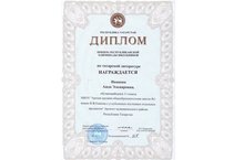 Поздравляем призера республиканской олимпиады по татарской литературе Иванову Аиду, ученицу 11 «А» класса и учителя татарского языка и литературы Хайретдинову Фанзилю Табрисовну.