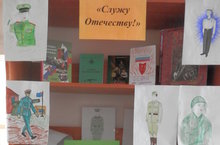 Библиотекарь Гилазутдинова И.М. оформила выставку рисунков учащихся 7-ых классов на тему: «Служу Отечеству».