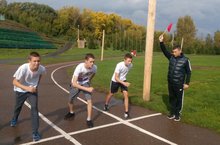 22 сентября, ученики старших классов на стадионе сдавали нормативы по бегу на 100 м. Лучший результат показал ученик 11А класса Вафин Айрат.