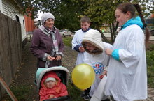 Целью акции было подарить улыбки прохожим. Члены отряда вышли на улицы родного города и раздали прохожим листовки, смайлики с добрыми улыбками. Также на листовках была информация о проекте «SMS-дети».
