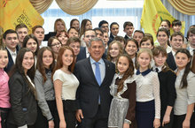 Сегодня Президент Республики Татарстан Рустам Минниханов встретился со стипендиатами Специальной государственной стипендии РТ, участниками федеральных, окружных молодежных форумов, активом детских и молодежных общественных организаций. Среди приглашенных была учиеница нашей школы Прахова Камилла.