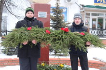 Ребята из Совета старшеклассников возложили венки к памятникам В.Ф. Ежкова у школы и в центре города.