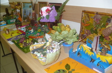 Выставка поделок разместилась в корридоре первого этажа нашей школы.