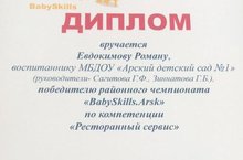 Поздравляем Евдокимова Романа - победителя районного чемпионата "BabySkills.Arsk" по компетенции "Ресторанный сервис". Желаем дальнейших успехов!