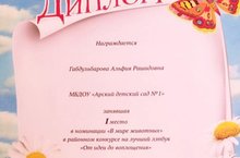 Поздравляем Габдульбарову А.Р., занявшую 1 место в районном конкурсе на лучший лэпбук "От идеи до воплощения" в номинации "В мире животных". Желаем дальнейших успехов!
