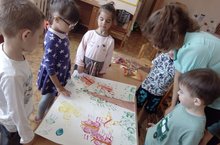 Сегодня дети средней группы №2 получили огромное удовольствие от создания картины о лете.Дети с любопытством,радостью и удовольствием рассматривали свои цветные ладошки,показывали их товарищам,оставляя следы на бумаге.Маленьким художникам очень понравилось рисование пальчиками и ладошками.