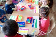 Дети старшей группы совершенствуют навыки счёта в пределах 10, сравнения групп предметов и уравнивания их.Детям очень нравится заниматься со счётным материалом.