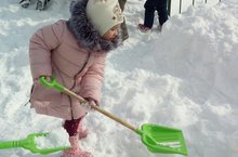 Сегодня дети средней группы на прогулке очищали участок садика от снега. Каждый ребенок с удовольствием помогал нашему дворнику убирать снег.