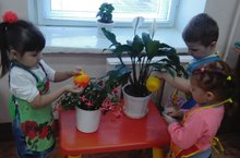 Бүген икенче кечкенәләр төркеме балалары табигать почмагында гөлләрне тәрбияләргә өйрәнделәр. Балалар кызыксыну һәм зур теләк белән тәрбиячегә гөлләргә су сибәргә, яфракларын сөртергә булыштылар.