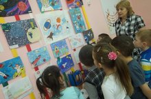 Сегодня дети подготовительной группы № 2 уточнили понятие "планеты солнечной системы", побеседовали о первом космонавте Ю.А.Гагарине. С большим интересом дети рассматривали выставку поделок ко Дню Космонавтики и поиграли в подвижную игру "Космонавты".